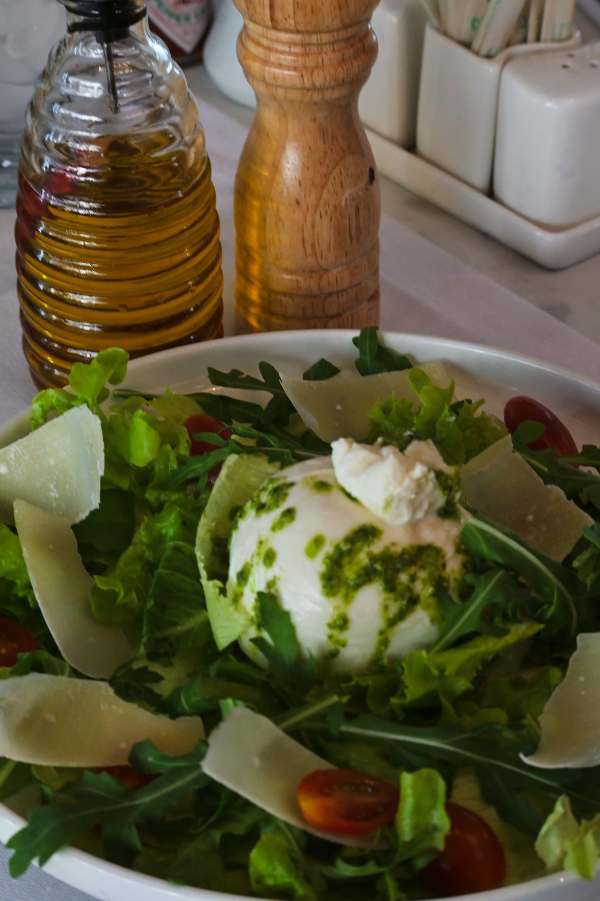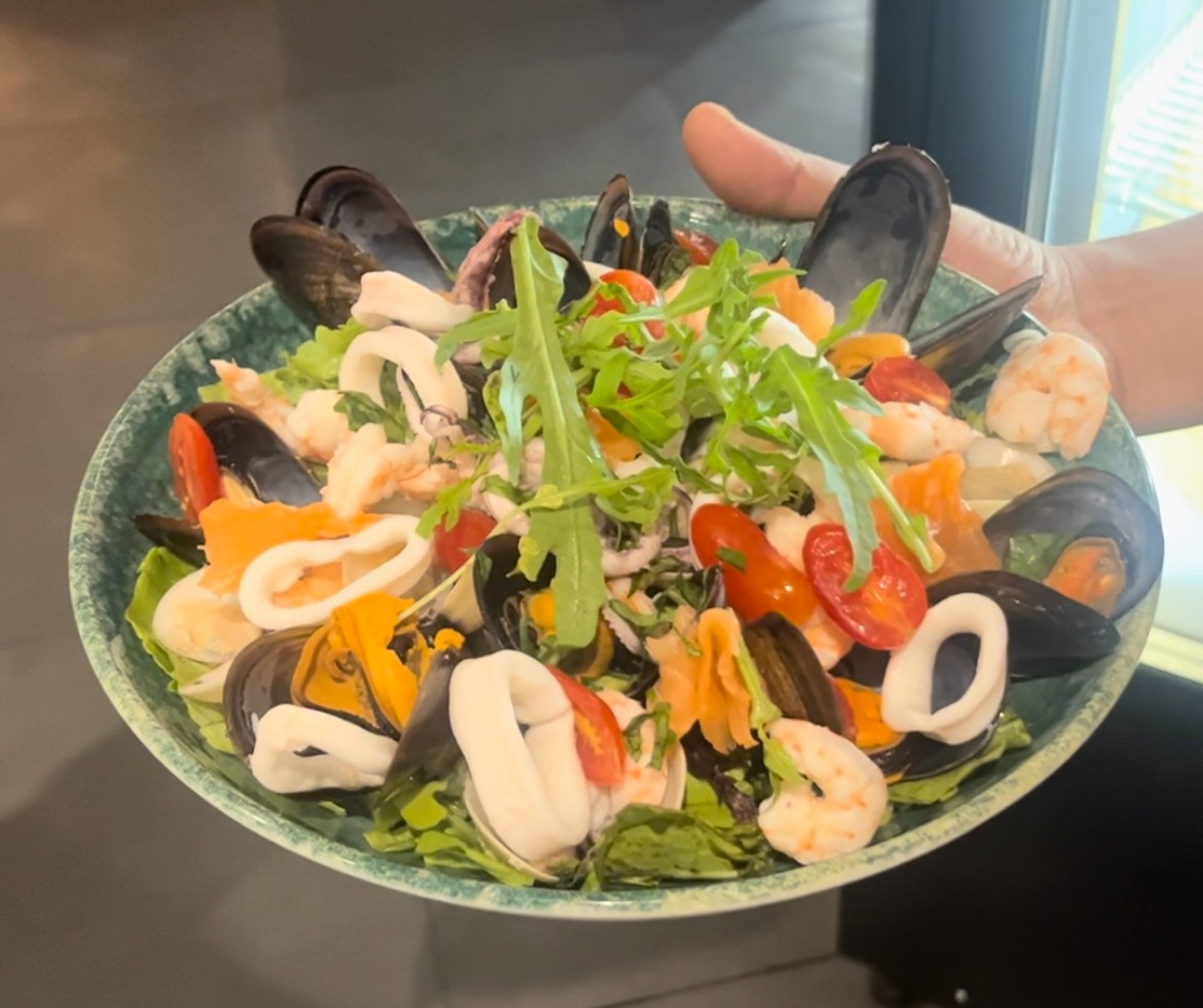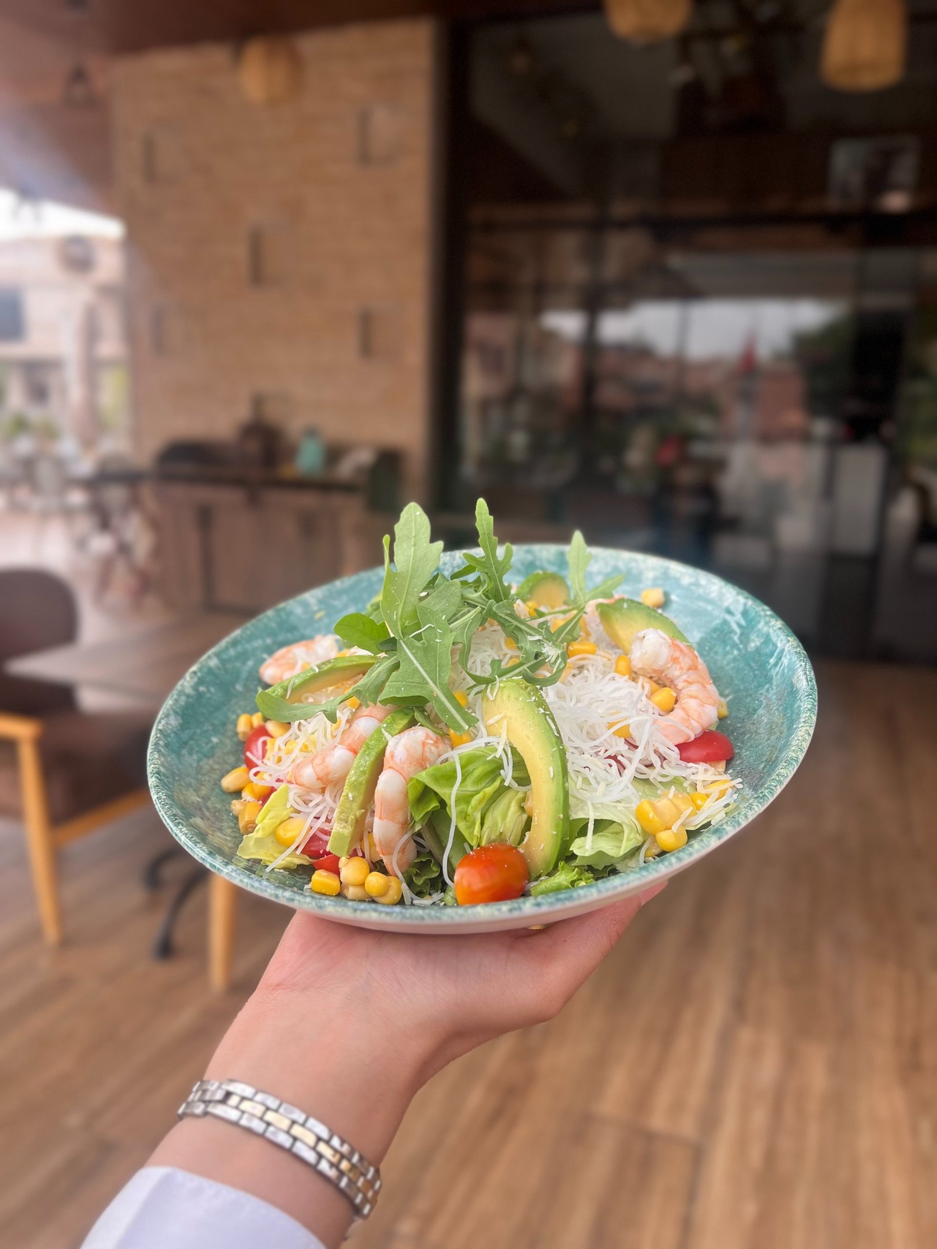 Savourez nos antipasti et salades italiennes préparées avec des produits frais : burrata crémeuse, crevettes marinées, légumes croquants, pesto maison.